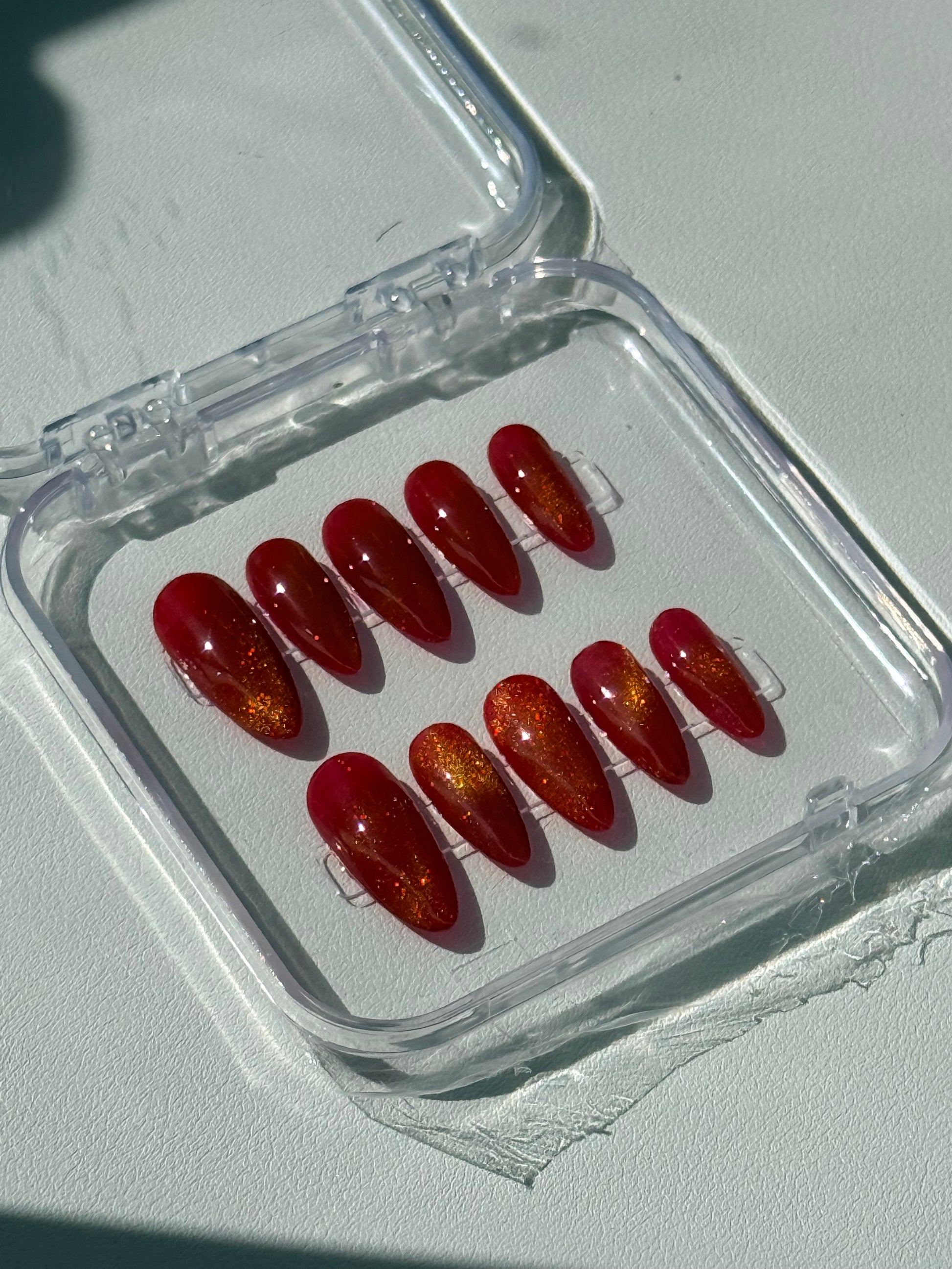 Amber finish press-on nails available in a variety of colors and shapes to suit every style. Designed to deliver a flawless, salon-quality finish in minutes, each set combines beauty, comfort and durability.